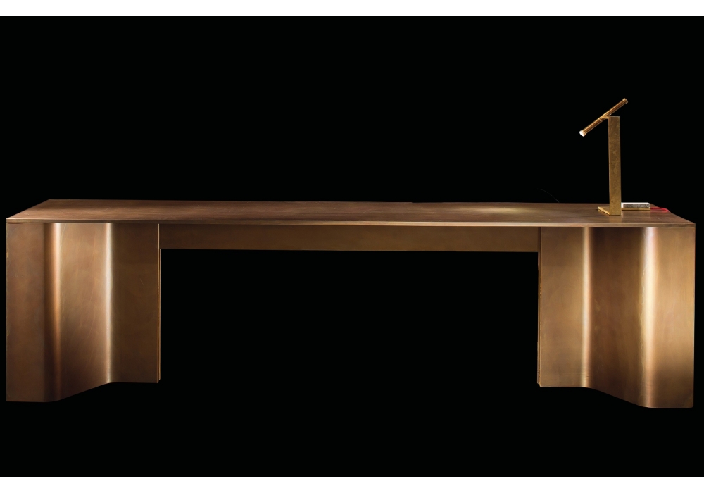 Time designed by Massimo Castagna for Henge is a quadrangular table made entirely of wood with a hand-burnished brass finish. The structure is in treated blockboard. Time is available in different sizes, finishes and versions.