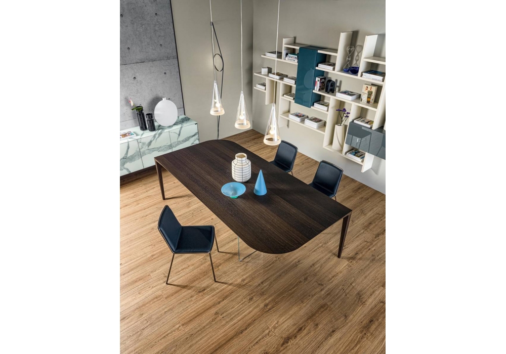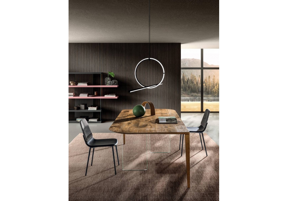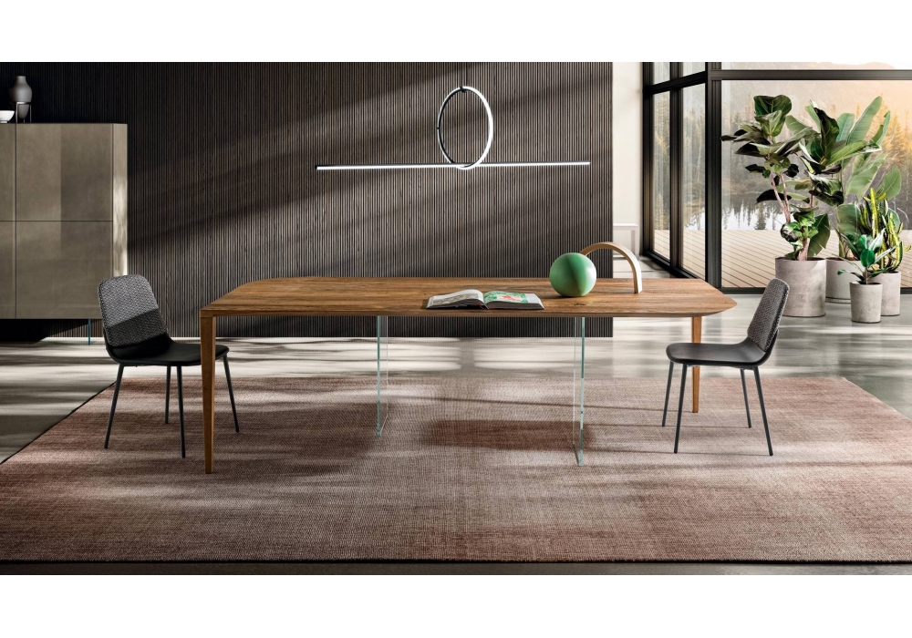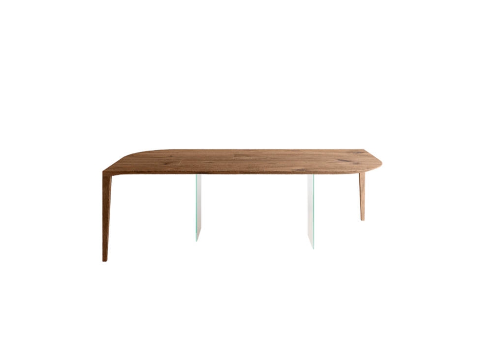 P&J designed by Daniele Lago for Lago is a table with a Wildwood top. Legs in extra-clear glass and Wildwood veneered steel.