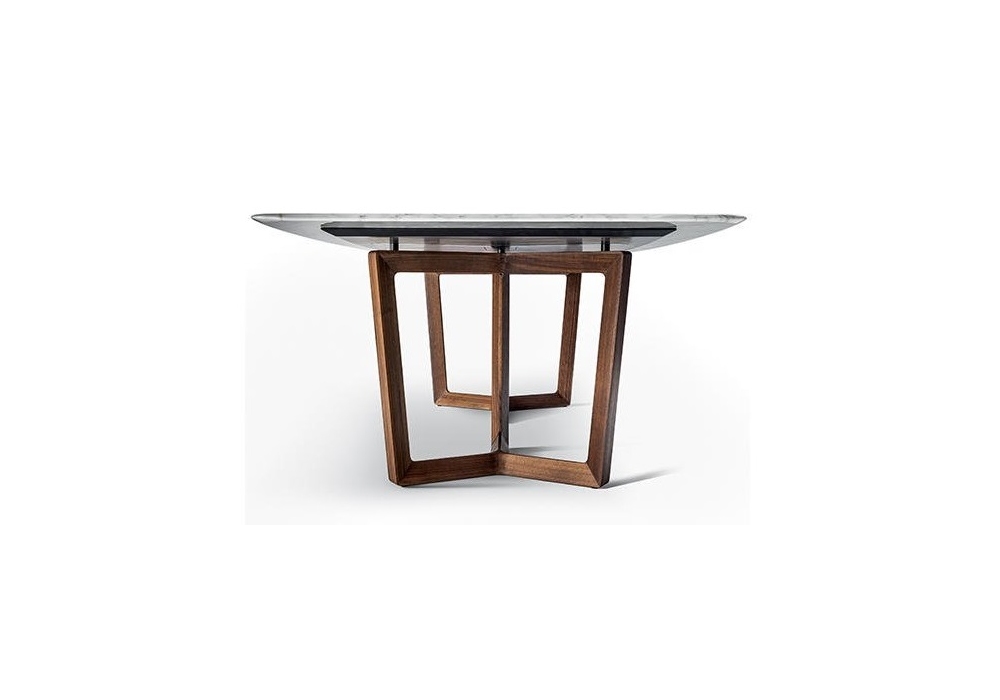 Bolero Ravel designed by Roberto Lazzeroni for Poltrona Frau is a table with marble top by bevelled edges, available in different finishes. Supporting structure made up of a self-supporting easel structure base consisting of three legs in Canaletto walnut or ashwwod.