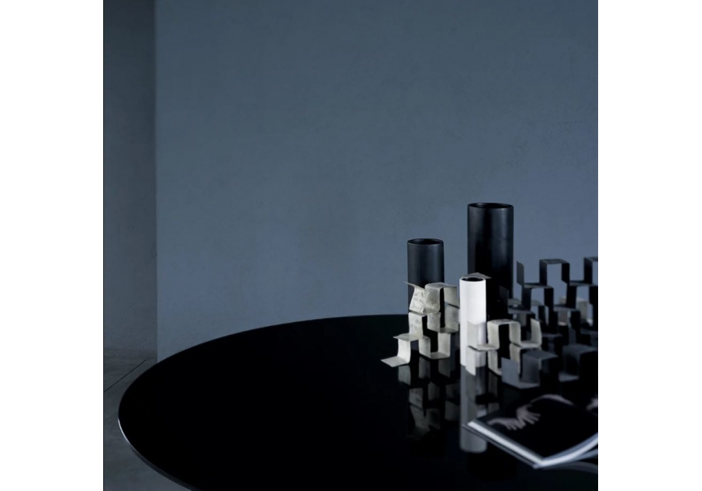 Hub designed by Piero Lissoni for Glas Italia is a tempered glass table supported by a transparent borosilicate glass base and a glass foot. The top and the foot are available in glossy, opaque or transparent extralight lacquered glass (only this version is made with foot in extralight mirror). Available in different sizes.