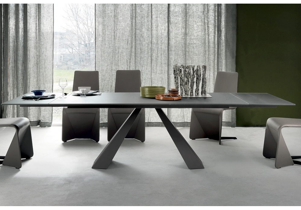 Eliot Drive designed by Giorgio Cattelan for Cattelan Italia is a table with steel base and extralight 12mm thickness glass top. Available in various finishes and 3 sizes.