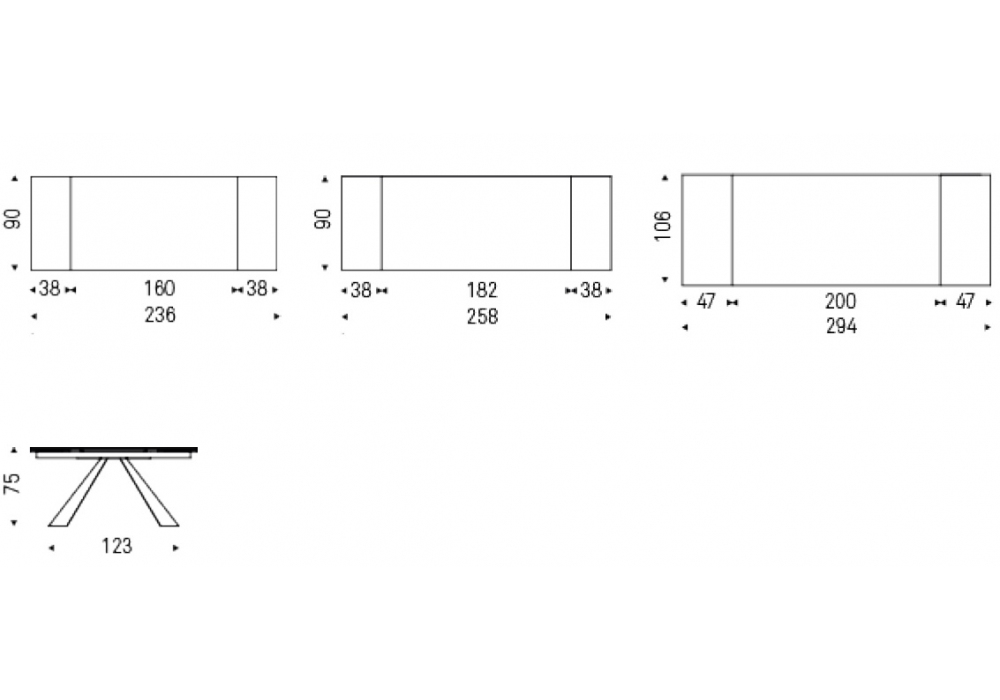| Dimensions | 160-236 x 90 x H 75 cm; 182-258 x 90 x H 75 cm. |