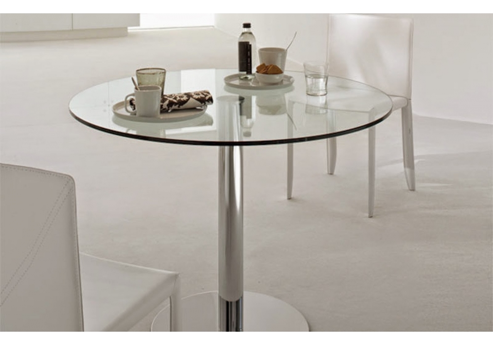Henry designed by Silver Studio for Cattelan Italia and a table with stainless steel base, chromed steel column and transparent glass top.