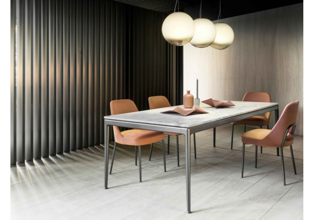 Pico designed by Design Center for Flexform is a table available in various sizes. The top can be made of marble or wood and the aluminium base is available in various finishes.