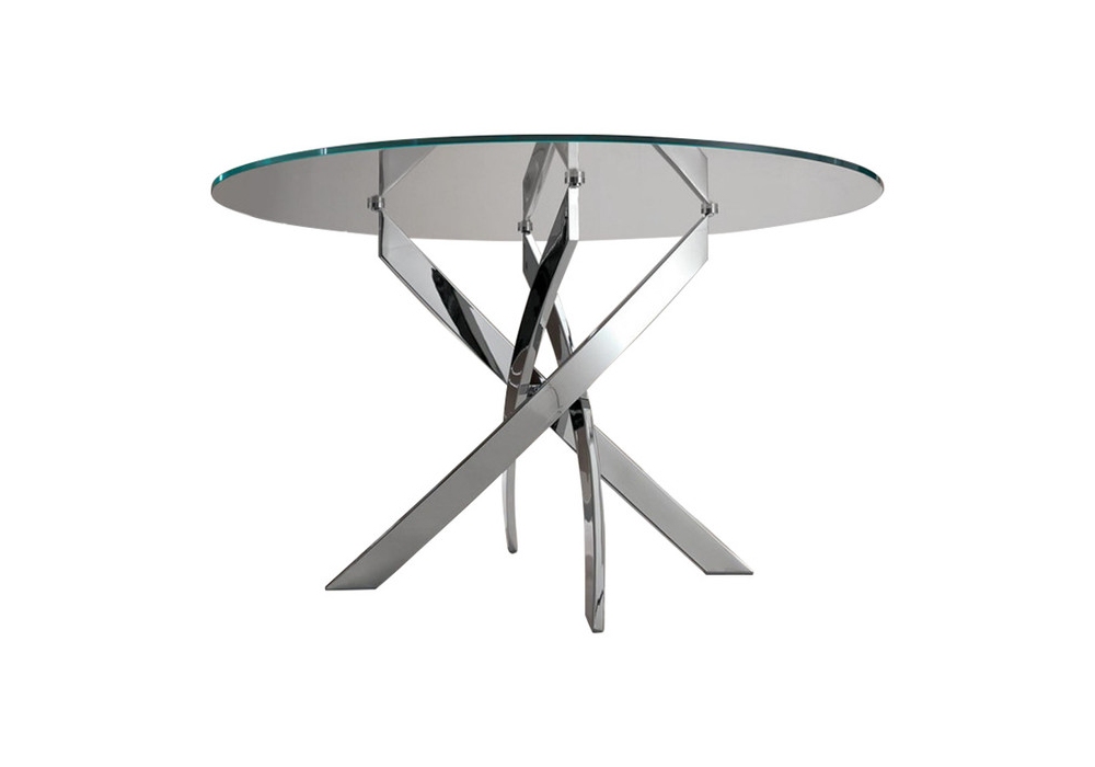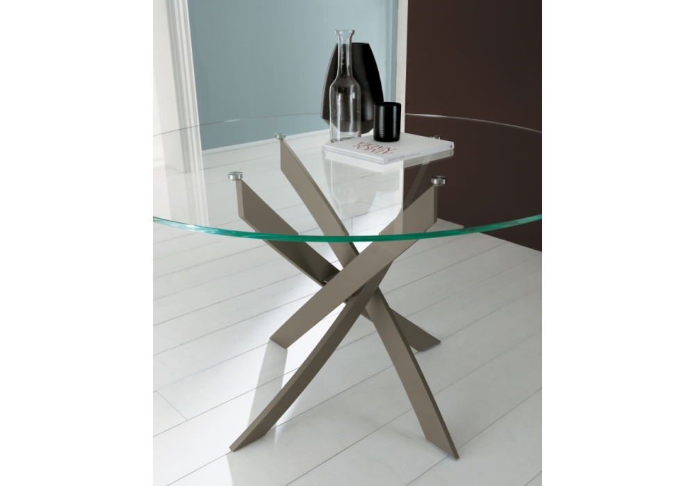 Barone designed by Pocci & Dondoli for Bontempi is table with metal structure and crystal top. Available in 2 versions: round of 3 dimensions and elliptical. Available in different finishes.