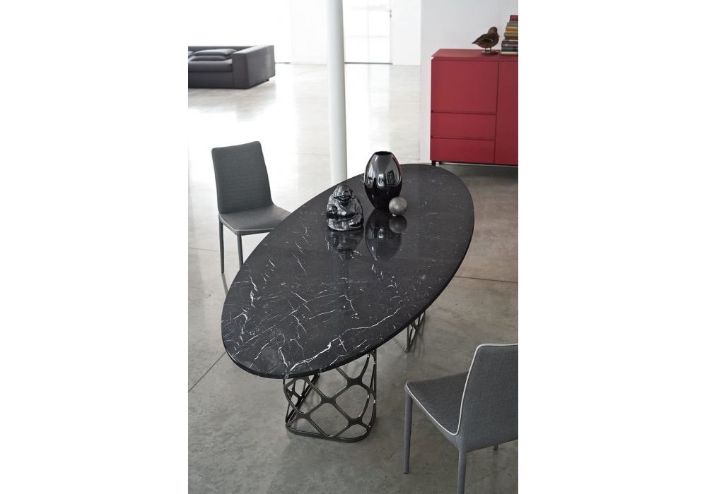 Majesty Elliptical designed by Marco Corti for Bontempi is a table with steel lacquered structure and marble top. Different finishes are available.