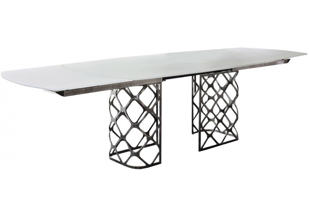 Majesty Extensible designed by Marco Corti for Bontempi is an extensible table with steel lacquered structure and crystal top. Different finishes and sizes are available.