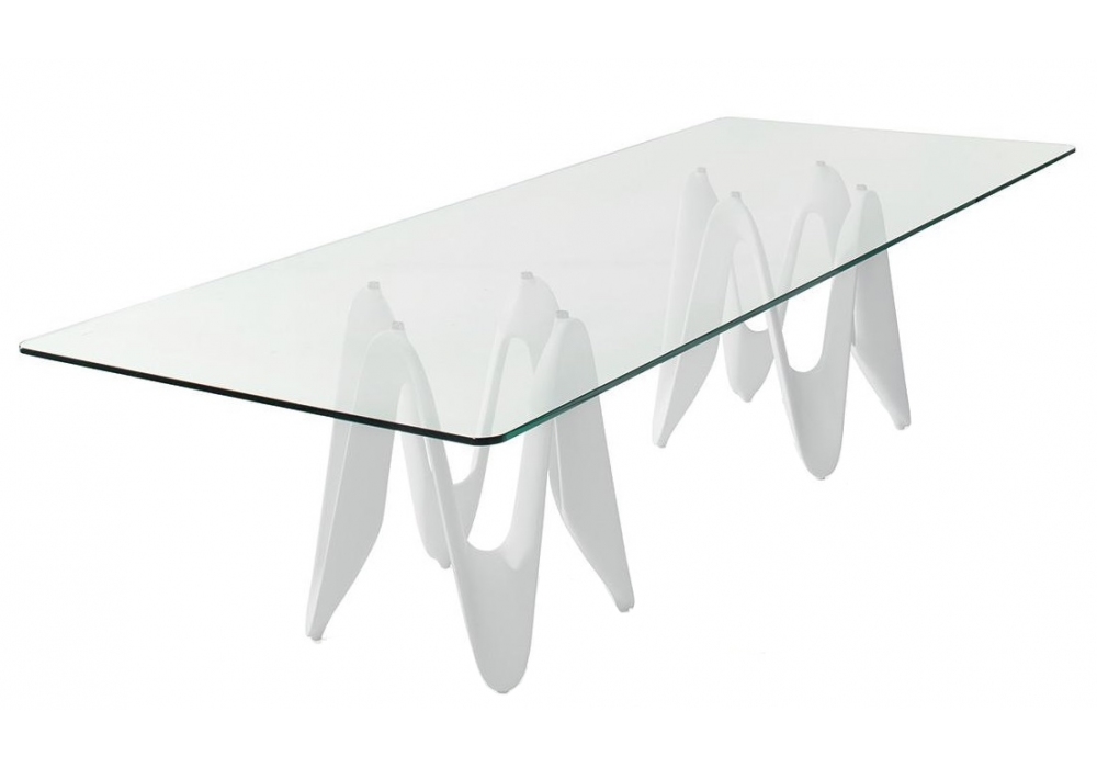 Lambda Two Bases designed by Gianluigi Landoni for Sovet is a table with two bases made with a cristalplant or wooden base and a ceramic or glass top. Available in different finishes and dimensions.