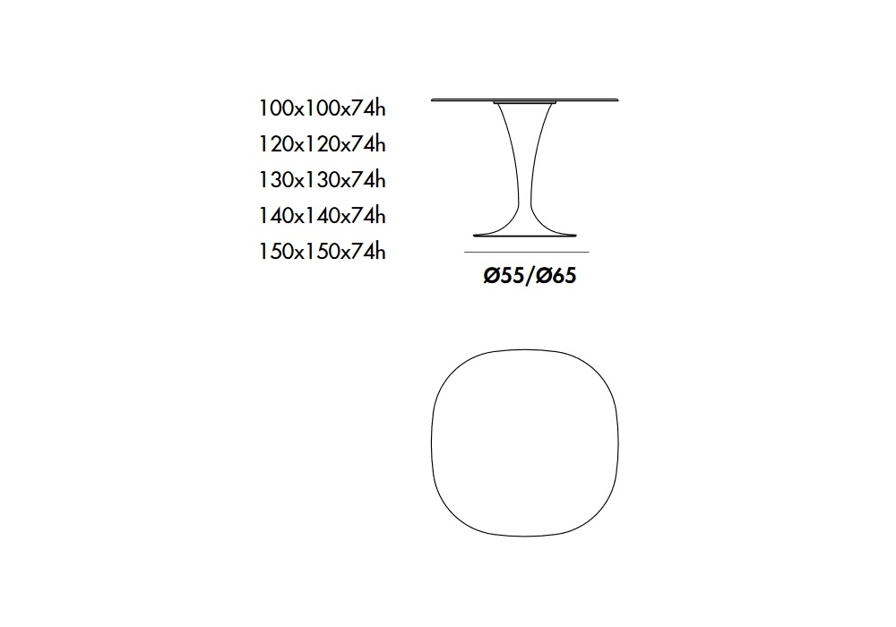 | Dimensions | 100 x 100 x H 74 cm; 120 x 120 x H 74 cm; 130 x 130 x H 74 cm; 140 x 140 x H 74 cm; 150 x 150 x H 74 cm |