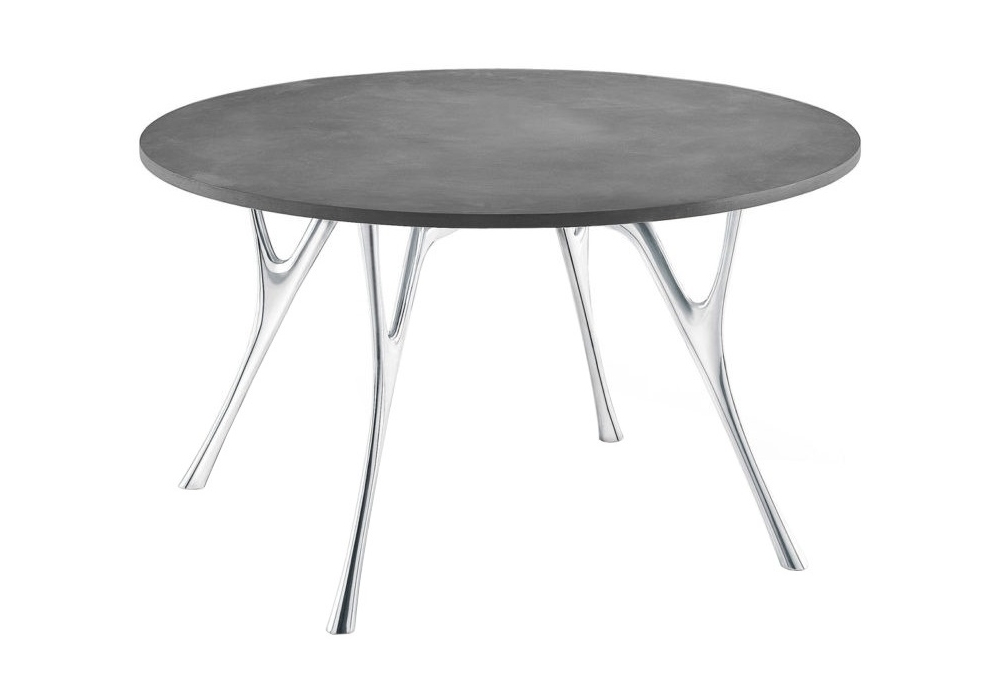 Pegaso Solid designed by Angelotti and Cardile for Caimi Brevetti is a table with an extremely light composite top with a "sandwich" structure consisting of a blockboard wood core, enclosed between two aluminum plates covered in the upper part and on the perimeter edges with a sheet of brushed white acrylic resin or coated with concrete. Structure made of polished or painted aluminum.