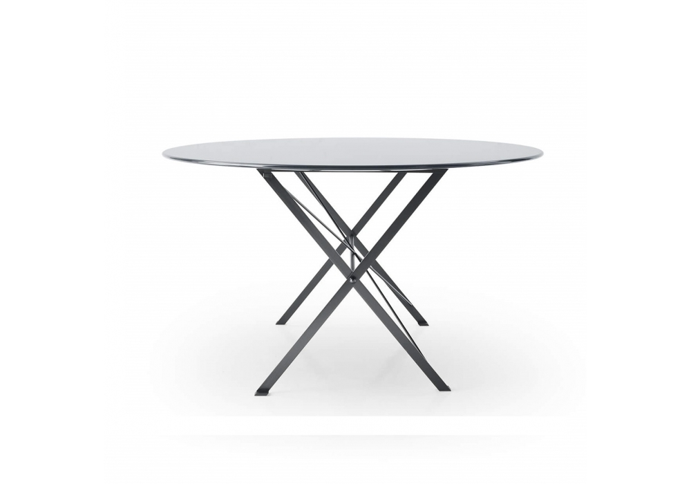 Cavalletto designed by Luigi Caccia Dominioni for Azucena is an oval table with top available in glossy lacquered or Calacatta marble finish. Base with brass, bronzed or chromed finish.