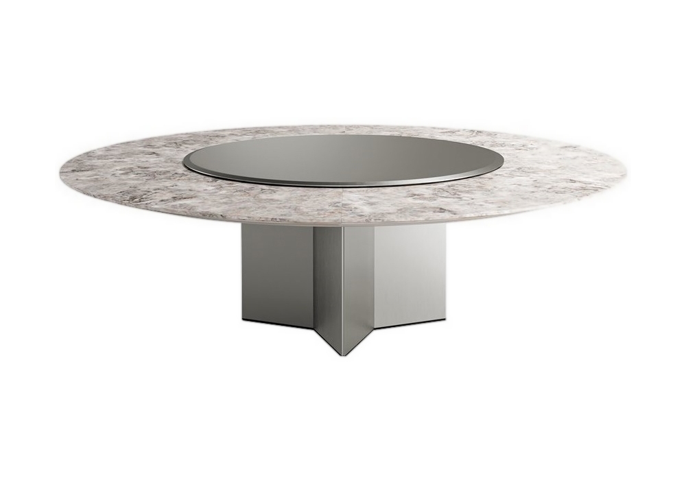 Yol Sect designed by Oscar & Gabriele Buratti for Gallotti&Radice is a table with wooden or marble top divided into four sections and 10mm rotating glass plate. Wooden base covered by 6mm tempered glass. Available in different combinations.