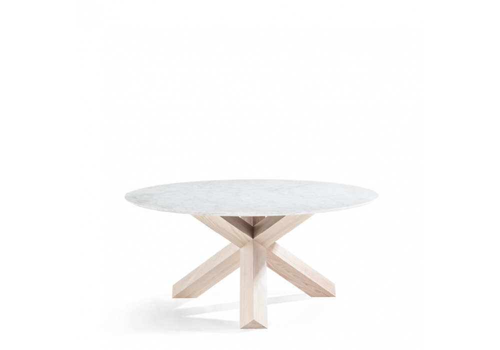 452 La Rotonda designed by Mario Bellini for Cassina is a round table with marble top and wooden base. Available in different finishes.