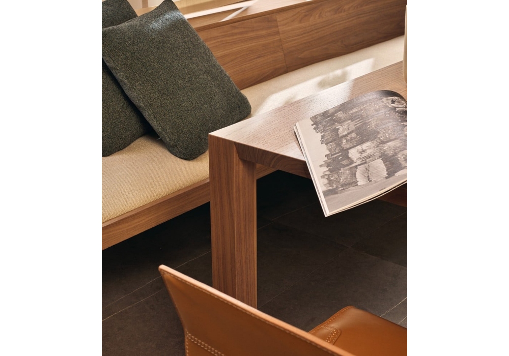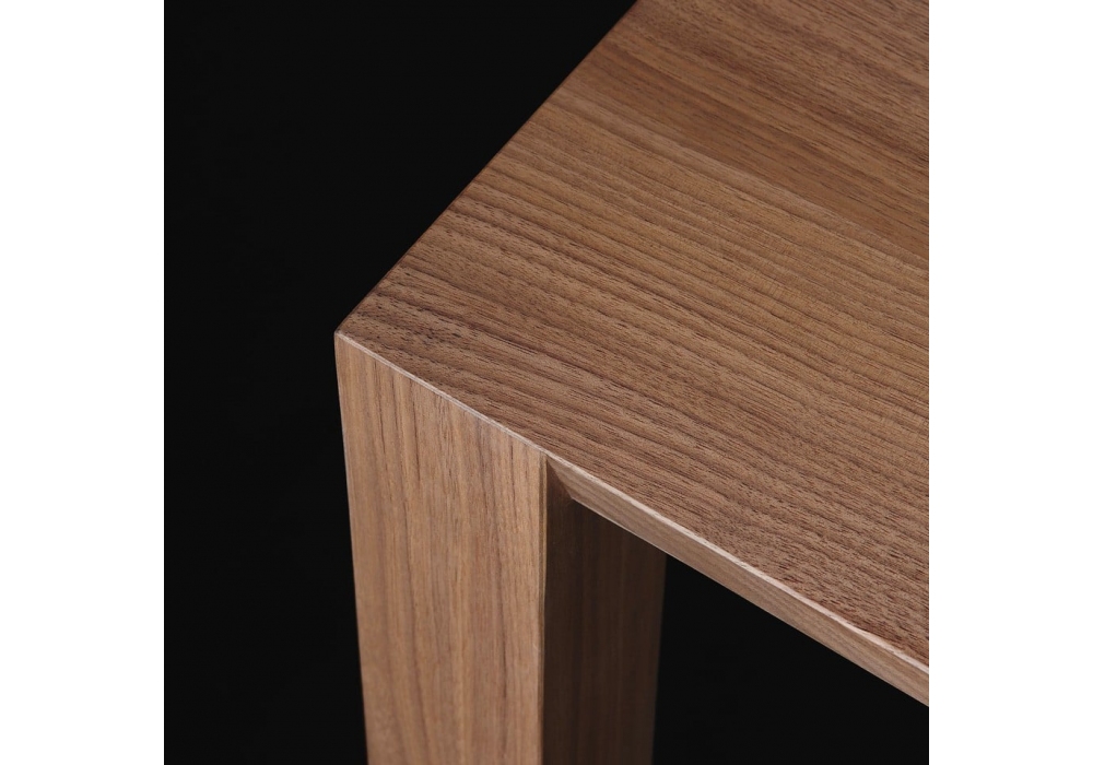 Blade designed by CR&S Kitchen Division for Poliform is a wooden table available in solid canaletto walnut or black elm stained wood.
