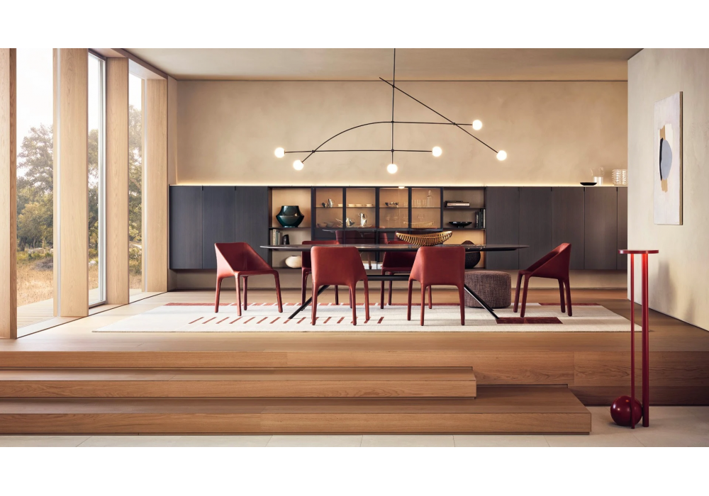 Mondrian designed by Jean-Marie Massaud for Poliform is a tables collection with varnished metal base and top available in wood, marble and glass.