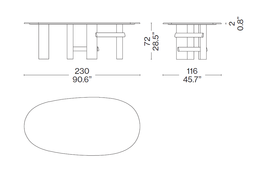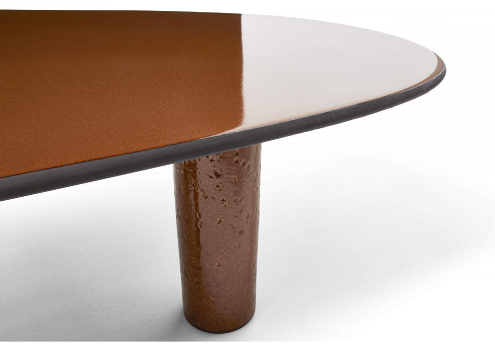 559 Sengu designed by Patricia Urquiola for Cassina is an oval table made with top and column foot in marble or porcelain stoneware and wooden legs. Available in different finishes.