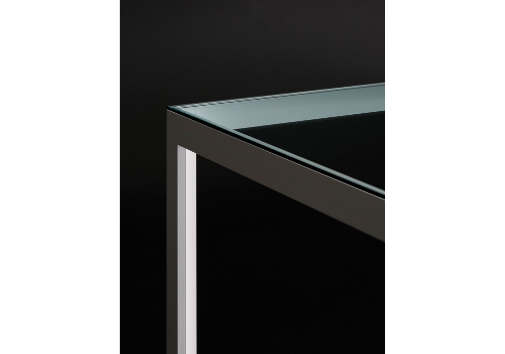 Fractal designed by Piero Lissoni for Porro is a table system of several dimensions and finishes. It is composed of aluminium structure that can match tops of various materials, from transparent, etched or back-painted glassto lacquer or in wood, up to Corian and HDS. For the working use, Fractal is completed by office equipment such as hanging drawers unit , computer holder, vertical courtesy panel, colum for cable passageinside the section of the leg and top acces.