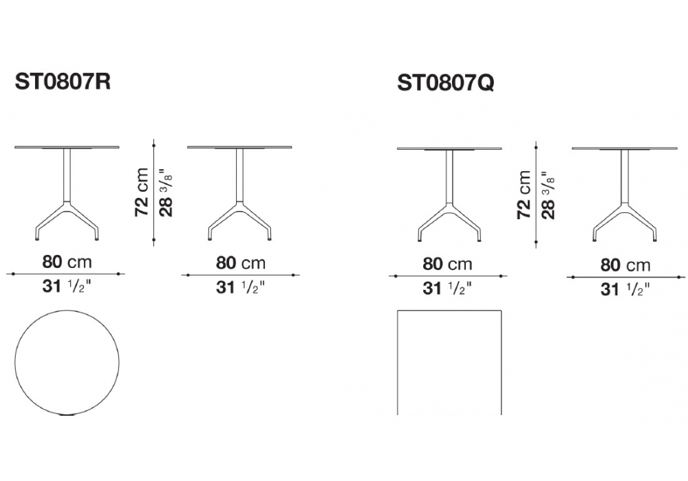 | Dimensions | Ø 80 x H 72 cm; 80 x 80 x H 72 cm. |