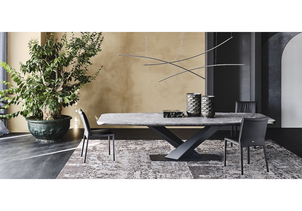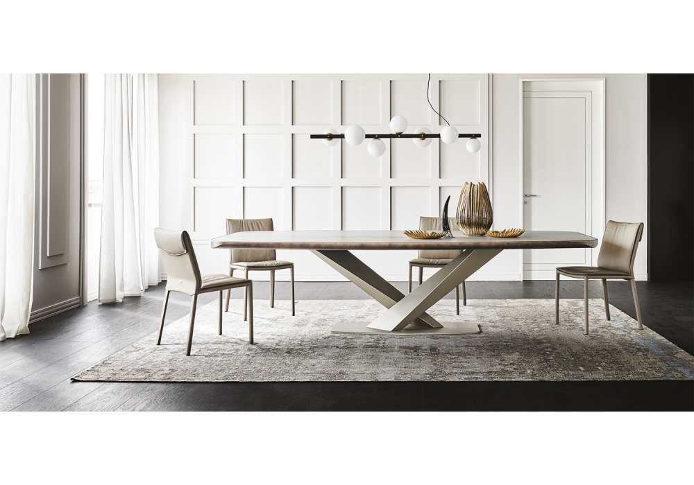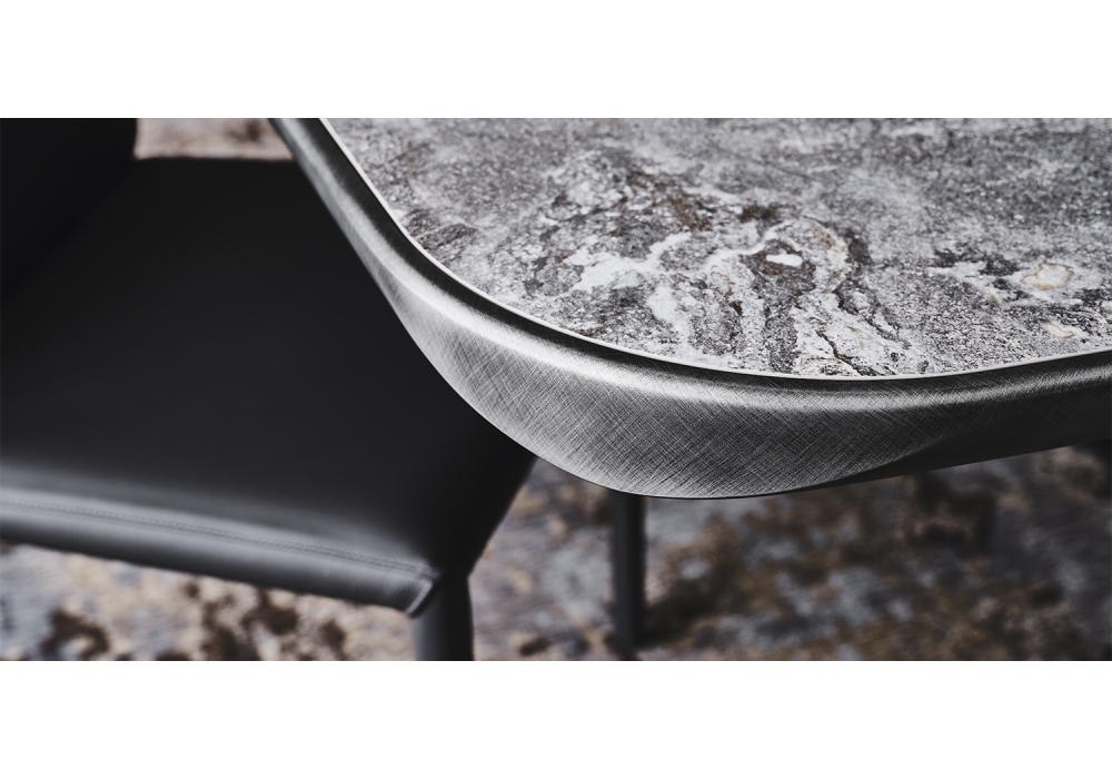 Stratos Keramik Premium designed by Paolo Cattelan for Cattelan Italia is a table made of embossed lacquered steel base and top in ceramic Marmi in several colours with Brushed Bronze or Brushed Grey lacquered and rounded lower profile. 6cm thick top on 300x128 version and 5cm on 200x120 and 240x120 versions.