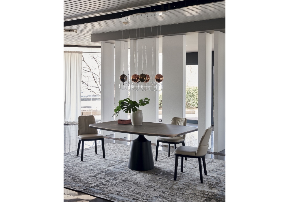 Yoda Keramik Premium designed by Paolo Cattelan for Cattelan Italia is a table made of embossed lacquered steel base and top in ceramic Marmi in several colours with Brushed Bronze or Brushed Grey lacquered and rounded lower profile.