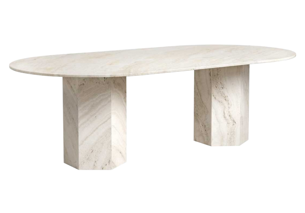 Epic designed by GamFratesi for Gubi is a table made of travertin.