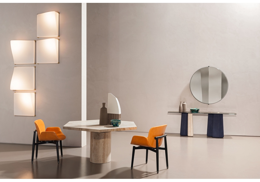 Jupiter Special Edition designed by StudioPepe for Baxter is a table made with top and base in matt Travertino marble. Connection plate in matt black metal. Available in different dimensions.