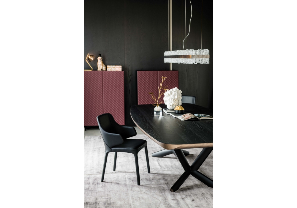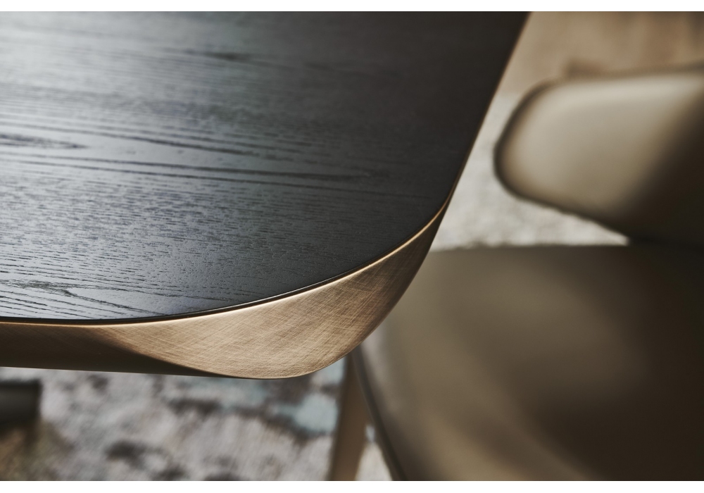 Planer Wood C designed by Paolo Cattelan for Cattelan Italia is a table made of embossed lacquered steel base. Top available in Canaletto walnut (NC) with Brushed Grey lacquered and rounded lower profile or Elm open pore matt black with Brushed Bronze lacquered and rounded lower profile.