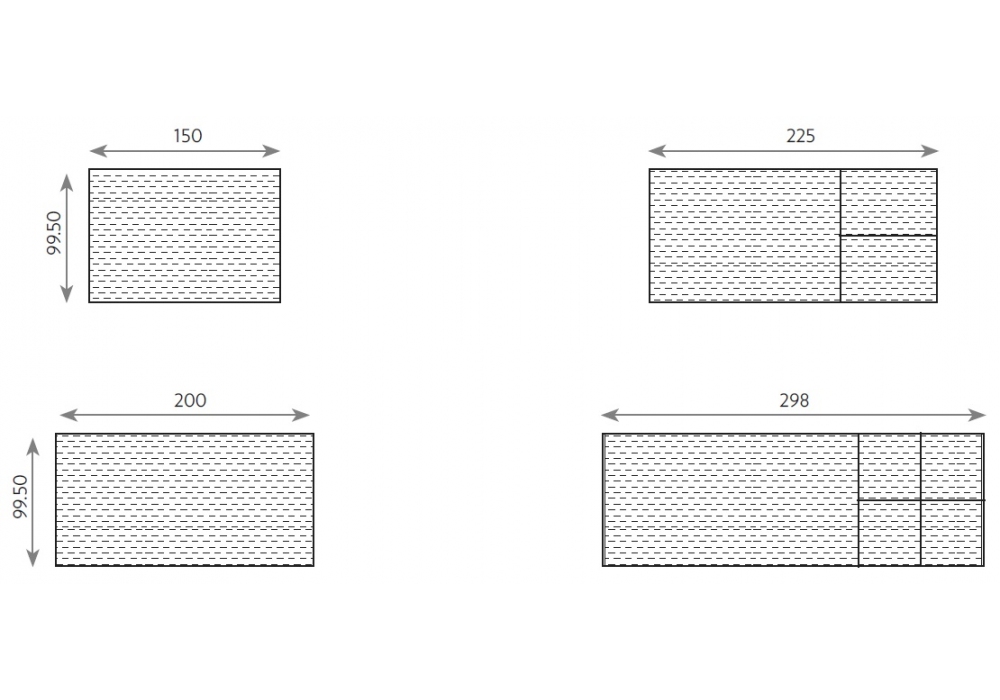 | Dimensions | 150/225 x 99.5 x H 74 cm; 200/298 x 99.5 x H 74 cm |
