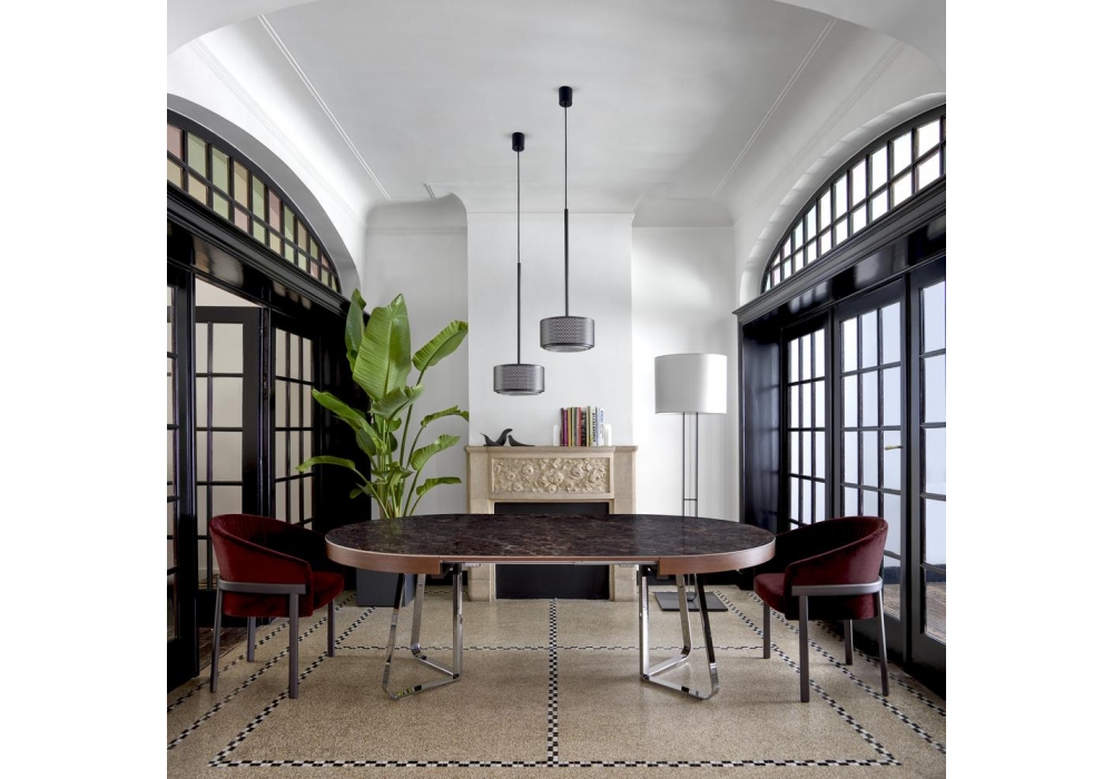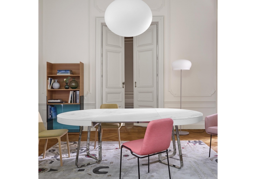 Ava designed by Thibault Desombre for Ligne Roset is an extendable table with top in ceramic stoneware with marble effect and metal base, available in 2 finishes. Also available in 2 sizes.