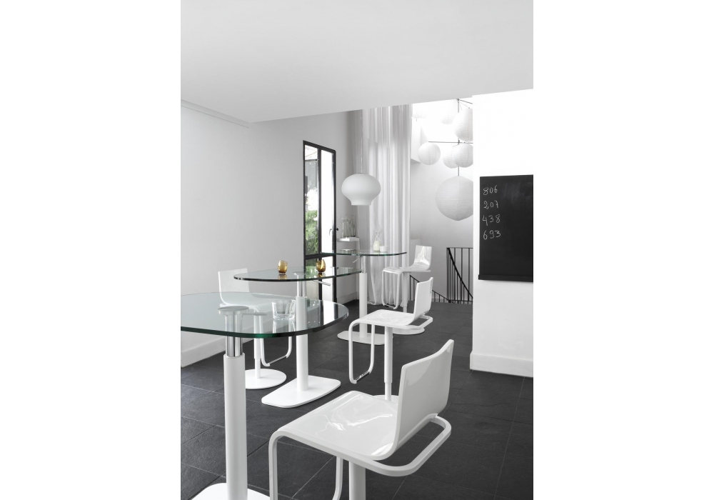 Piazza designed by Michael Koenig for Ligne Roset is an height adjustable table with top made of glass or Fenix. Lacquered base available in 2 finishes.