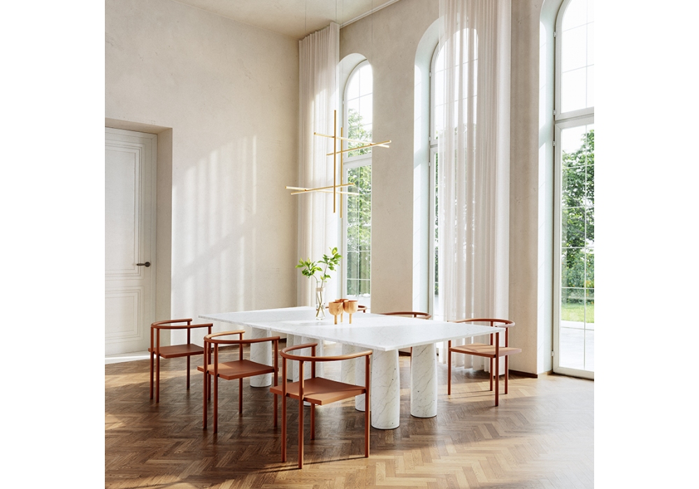 The Colonnato designed by Mario Bellini for Kettal is a table characterized by cylindrical legs made entirely of marble, teak wood or stone. The Colonnato is available in different sizes.