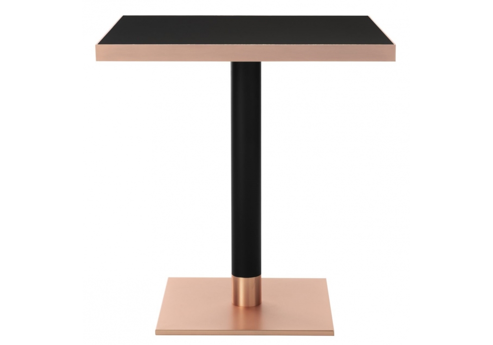 Sherry designed by Gebrüder Thonet Vienna is a bar table available in two heights. Square metal base in bronze, copper or brass finishes. Stem in solid wood, stained, lacquered or in black painted metal. Square top in marble, laminate or natural or stained oak veneer.
