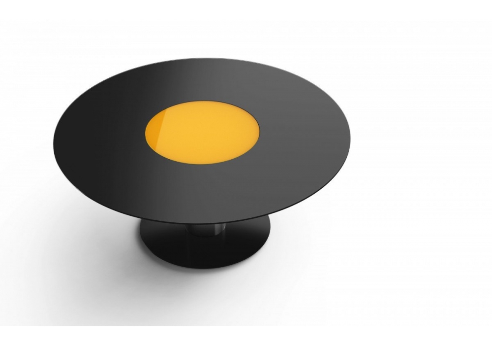 Lazy Hub designed by Piero Lissoni for Glas Italia is a round table with rotating food serving disc Ø 70 cm, with movement, recessed and aligned in the center of the top. The outer ring of the top and the foot of the table are in 12 mm tempered glass, glossy or matt lacquered, while the internal finish (swivel disc) is available in different glossy or matt finishes.