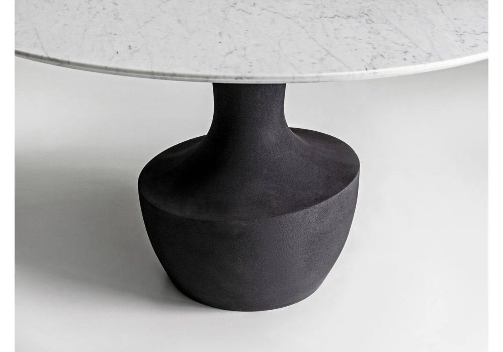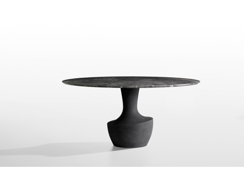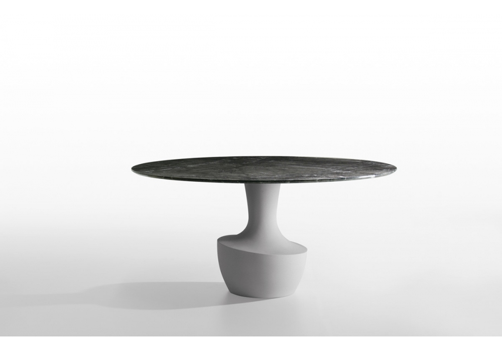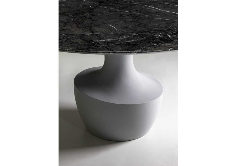 Anfora designed by Alexander Lorenz for Potocco is a table with quartz resin base in different colors. The top is circular in shape and is available in glass or marble in different finishes and in two sizes.