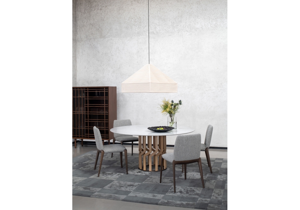 Intreccio designed by Nava + Arosio for Potocco is a table with a circular base structured by the combination of solid ash and marble in different finishes. The top is circular in shape available in different marble finishes.