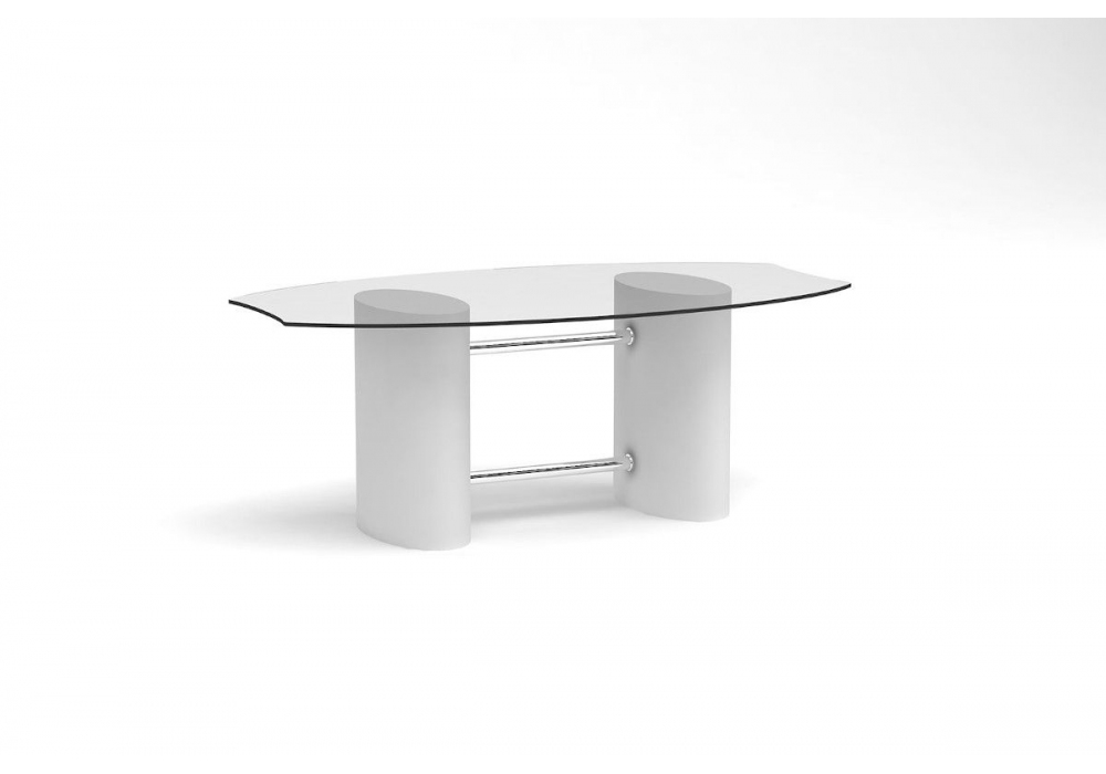 Winston designed by Slide studio for Slide is an elliptical table with a rectangular tempered glass top. Winston's essential design is complemented by the functionality of the two horizontal aluminum bars that act as footrests. Available in the bright white version or in different finishes