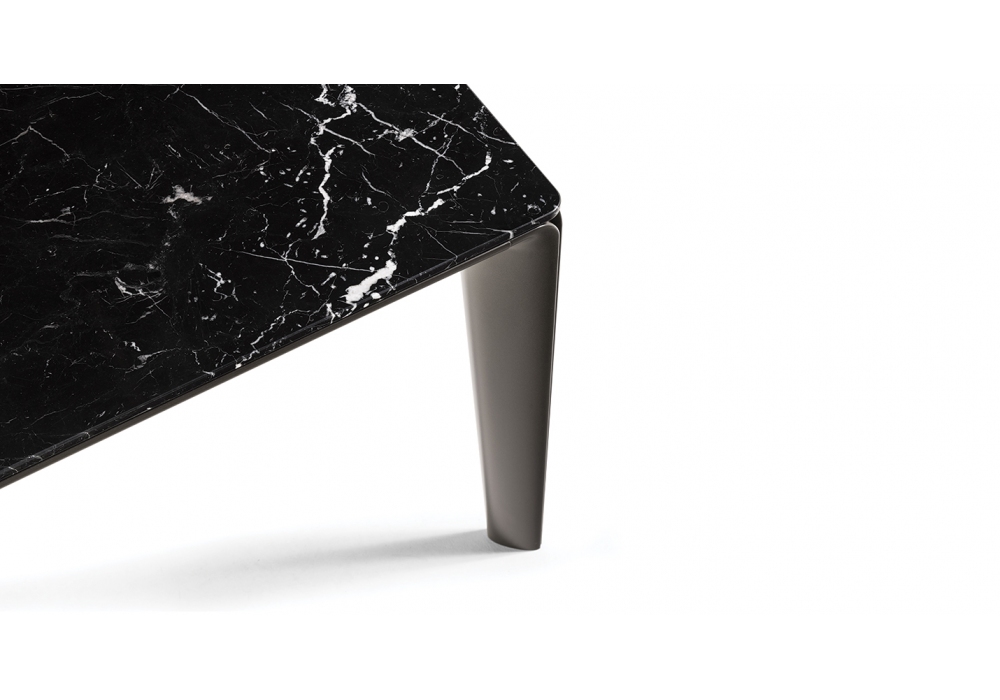 Homey designed by GamFratesi for Poltrona Frau is a table with painted aluminum structure, and marble or ashwood top.