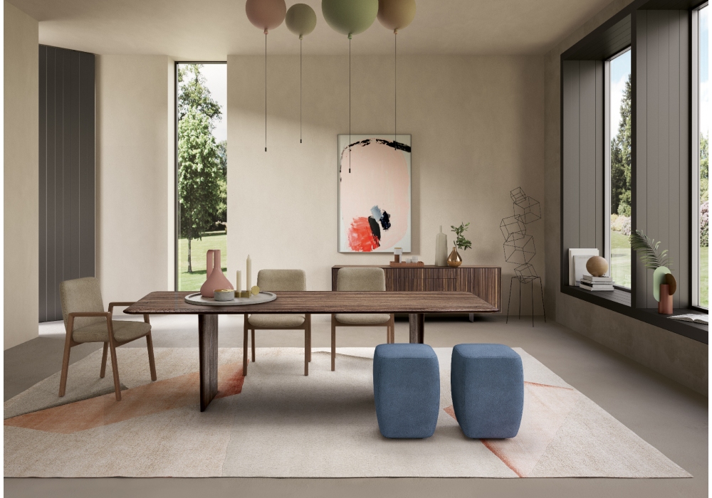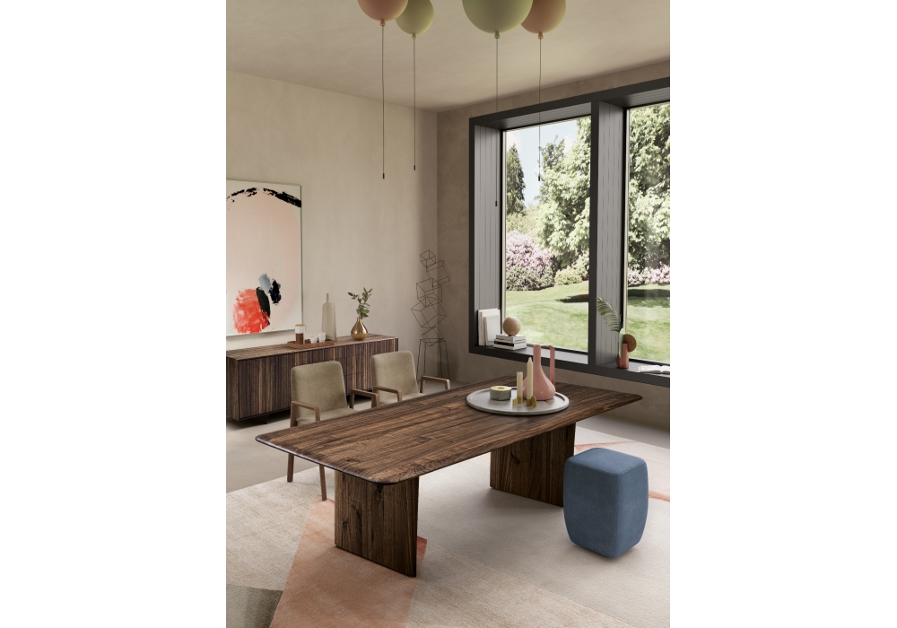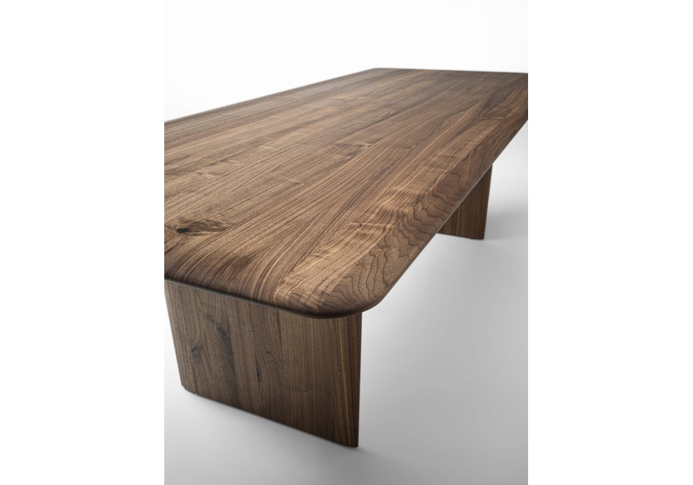 Vela designed by Riva 1920 is a table entirely made of solid wood with glued boards with rounded sides, which is characterized by tops and legs with thinned thicknesses through soap processing. Available in different finishes and dimensions.