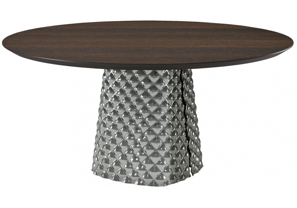 Atrium Wood Round designed by Paolo Cattelan & Lorenzo Remedi for Cattelan Italia is a round table with top in wood and base consisted of two finely worked crystal plates, a three-dimensional effect like quilting on fabric.