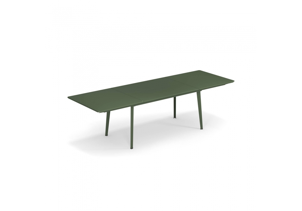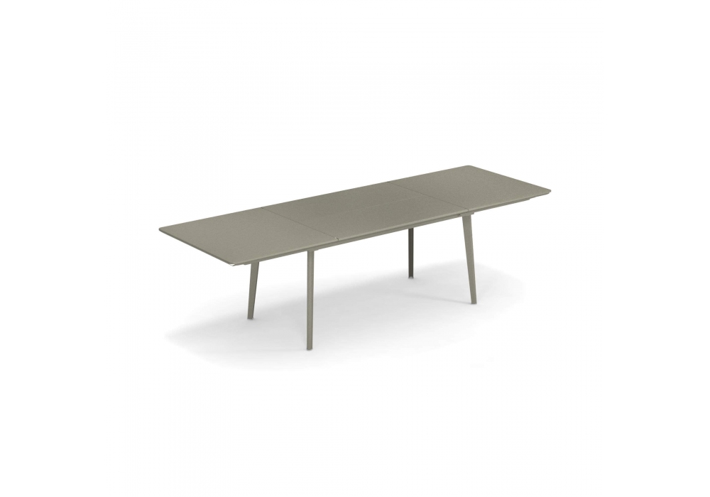 Plus4 designed by EMU is an extensible garden table, the top is in press-bent steel with careful processing of the finishes for a better aesthetic effect, The butterfly mechanism of the internal extension makes opening operations extremely practical. Available in different sizes and finishes.