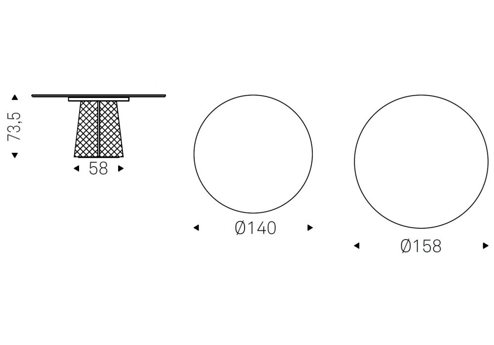 | Dimensions | Ø 140 cm x H 73,5 cm; Ø 158 cm x H 73,5 cm. |