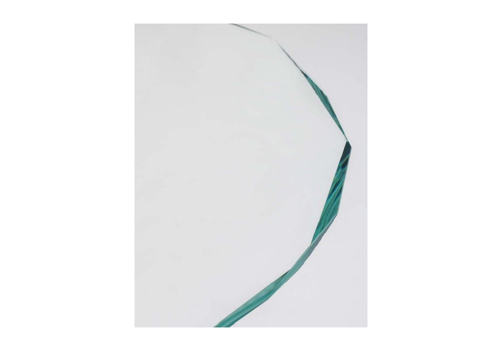 Hub Cut designed by Piero Lissoni for Glas Italia is a table with 15 mm thick tempered extralight glass top, with the edge characterized by facets of various widths and inclinations. The top is supported by a base made up of a hollow borosilicate crystal cylinder and a foot in extralight mirror mm. 12 tempered. The top can be disassembled and fixed to the base by means of a pair of stainless steel anodized aluminum rings. Available in various sizes.