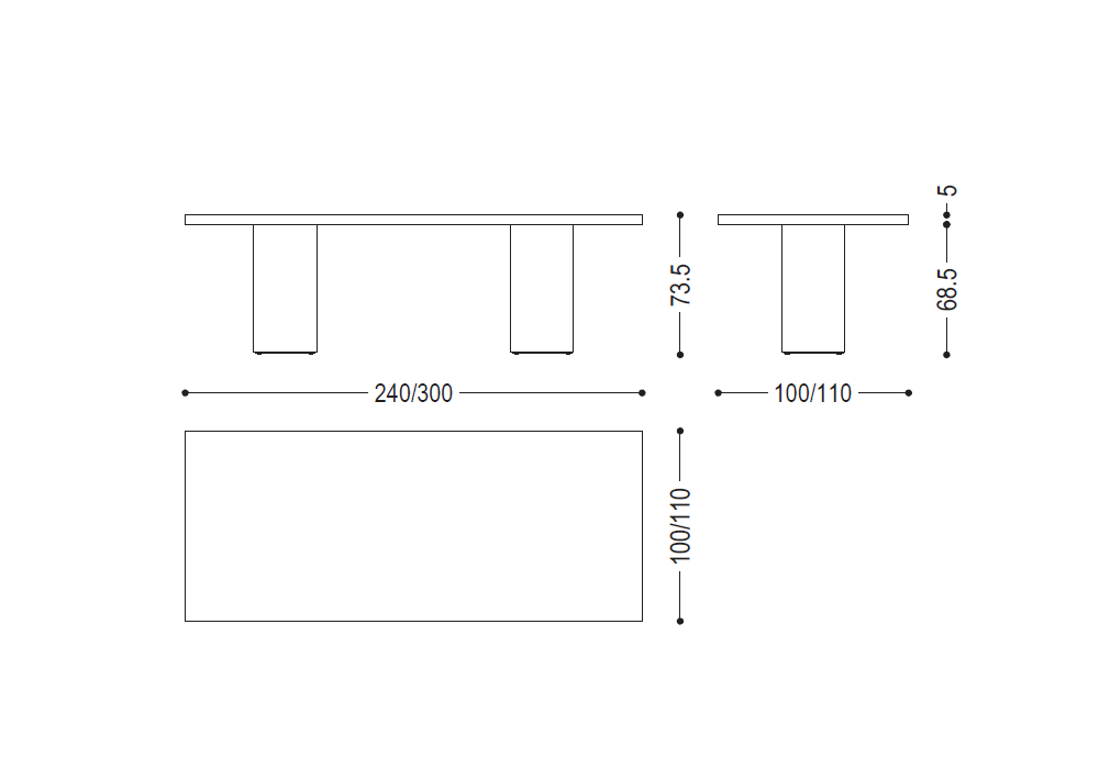 Boss Basic designed by C.R. & S. Riva 1920 is a table made entirely of solid wood, with two legs made of glued strips and empty inside. Available in different finishes and dimensions.