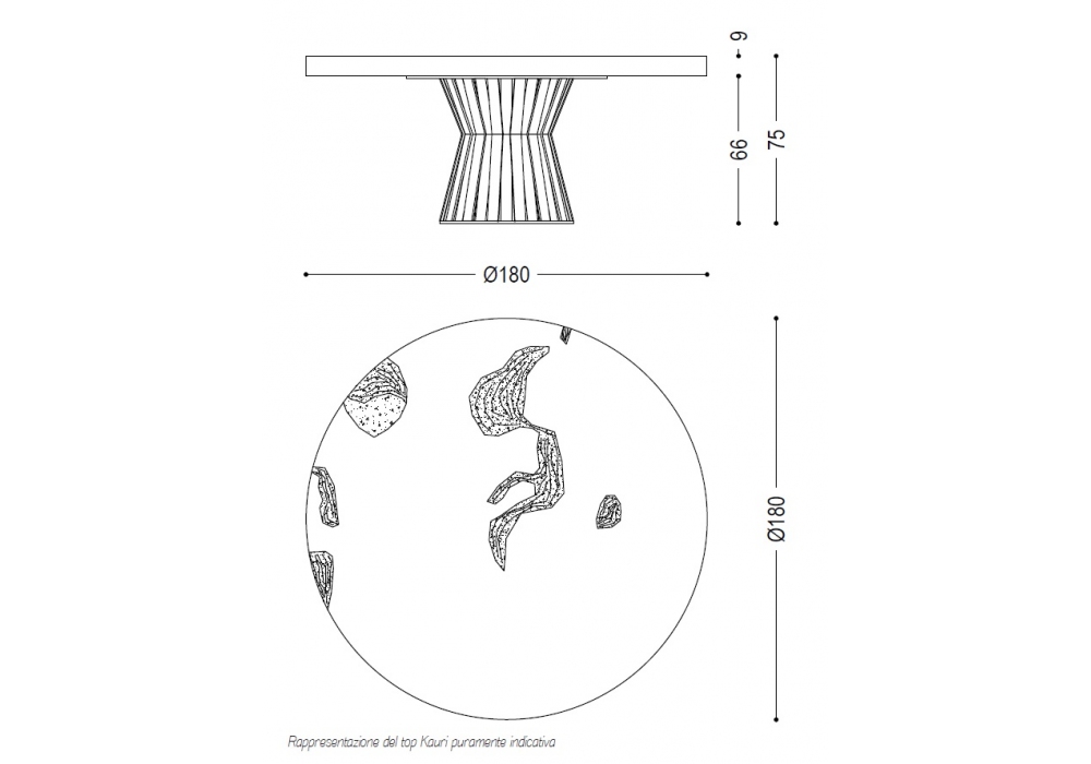 Kauri Round designed by C.R. & S. Riva 1920 is a table with a round top made of solid Kauri wood combined with a base made up of iron strips that taper in the center.