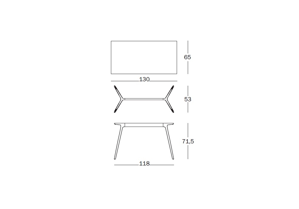 Baguette designed by Ronan & Erwan Bouroullec for Magis is a table with aluminum legs, Fenix top and ABS edge. It is available in different finishes.