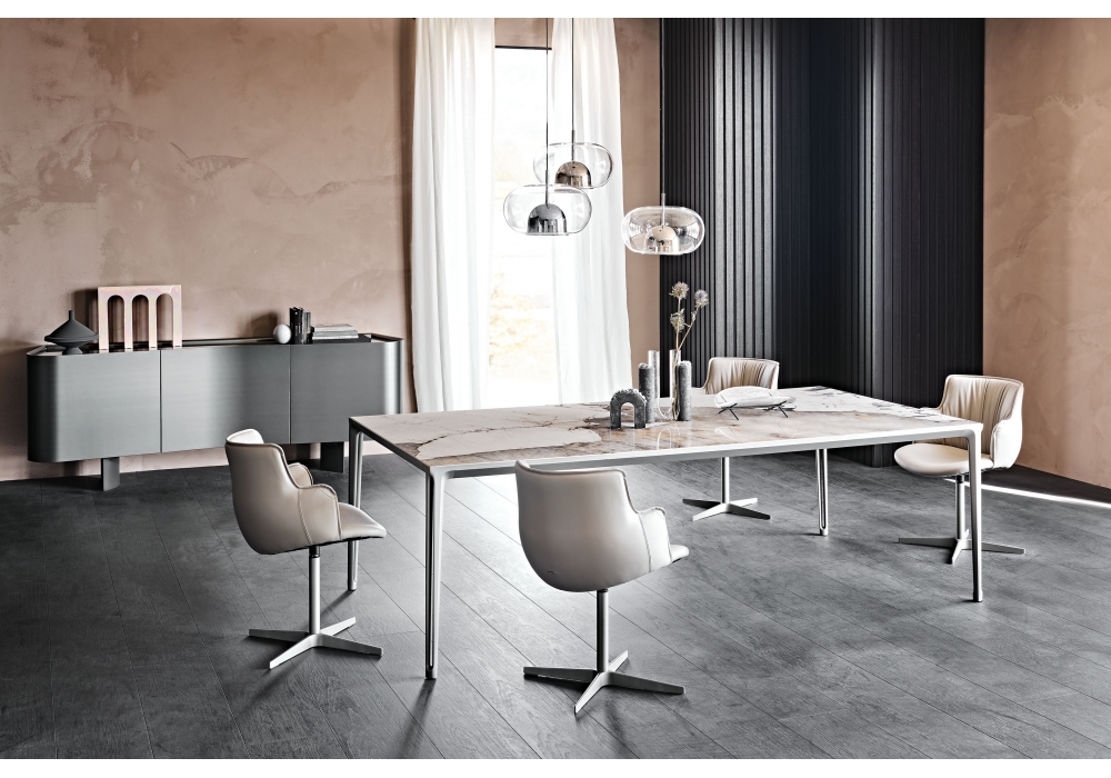 Boulevard Keramik designed by Archirivolto for Cattelan Italia is a table with top in ceramic Marmi and structure in embossed lacquered aluminium. Available in several dimensions.