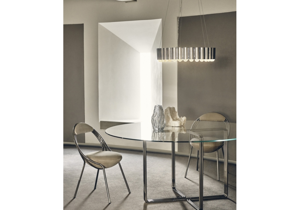 Musico produced and signed by Lee Broom is a table with tubular steel structure and glass top available in different finishes.