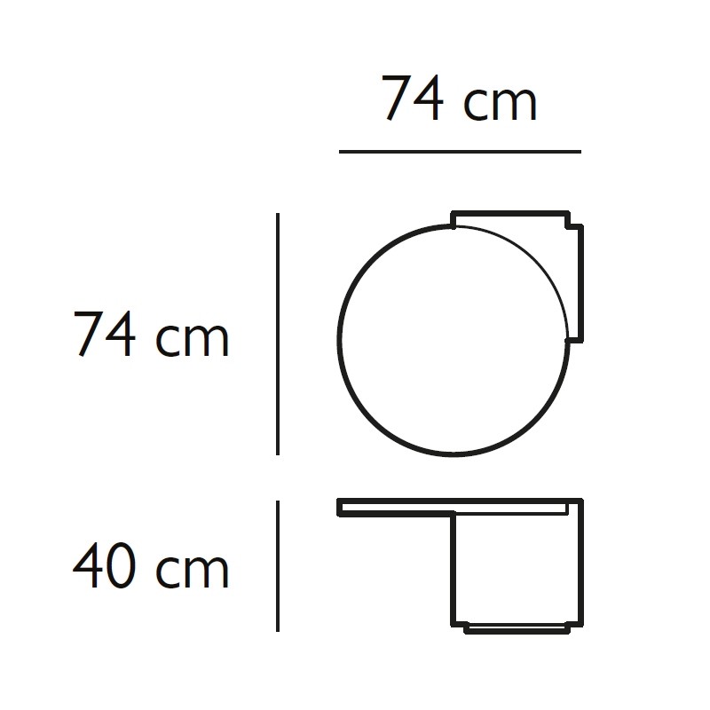 | Dimensions | Ø 74 x H 40 cm; Ø 124 x H 27 cm. |