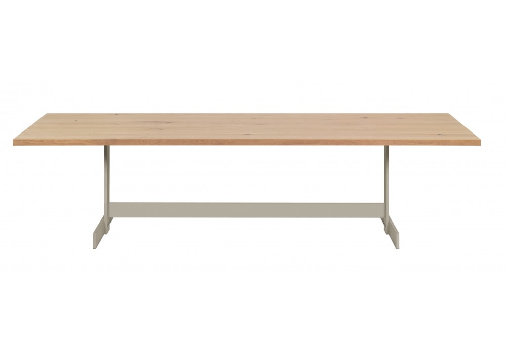 TA23 Kazimir Raw designed by Philipp Mainzer is a table made of oak or walnut is characterized by a bold mix of geometric shapes and materials and allows a multitude of interpretations in private and public spaces. Available in various sizes. In the 330 cm and 360 cm dimensions, the galvanized yellow finish is not available.
