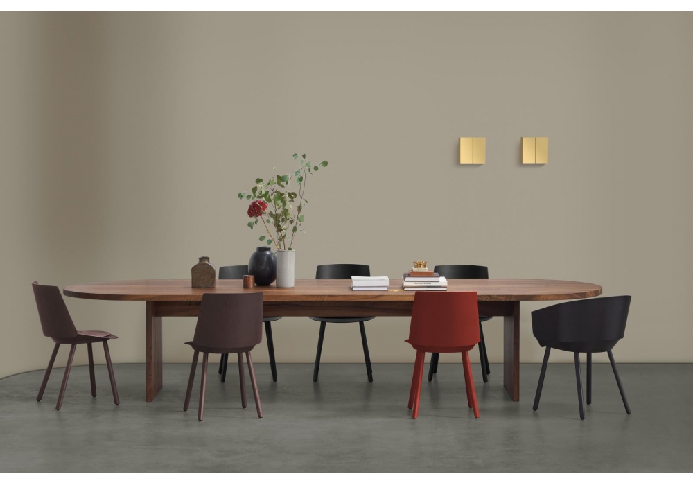 TA24 Ashida designed by Philipp Mainzer is an oval table made of solid wood with top in walnut or oak, inspired by Japanese carpentry and highly functional for private or contract spaces. Available in various sizes.
